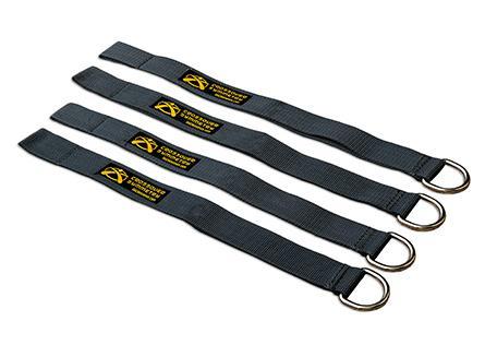 Designed to attach to any squat rack, rig or other stable structure. Squat rack straps can also be looped together to wrap around larger stable structures (i.e. trees. poles. etc).